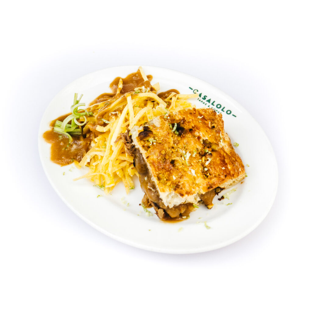 7- CASA LOLO Deja un comentario / Sin categorizar / Por rutadelatapa Bocado de carrillada, pistacho y lima. Descripción de la tapa:Bocadito de carrillada ibérica estofada a fuego lento, con pistachos, piñones y pasas. Servidos sobre un nido de patatas paja.Alérgenos:Gluten, lácteos, frutos de cáscara, dióxido de azufre y sulfitos, huevo.—¿Dónde se sirve?Mesas altasNo se sirve tapa:Sábado y Domingo solo de 17:00 en adelante.Día de cierre:JuevesWebsite:www.barcasalolo.comDirección:Avenida antonio Tore Tore 32, Torre del Mar Instagram Facebook